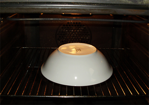 Τοποθετήστε ένα αναποδογυρισμένο μπολ (κεραμικό, γυάλινο ή μεταλλικό) πάνω στη σχάρα του φούρνου.