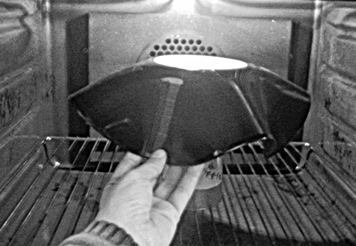 Επειδή η θερμοκρασία του φούρνου είναι αρκετά χαμηλη (μεχρι 100 βαθμούς) μπορείτε να ανοίξετε το φούρνο και να προσπαθήσετε με τα χέρια σας να μορφοποιήσετε το δίσκο βινυλίου. Για μεγαλύτερη ασφάλεια, φορέστε γάντια.