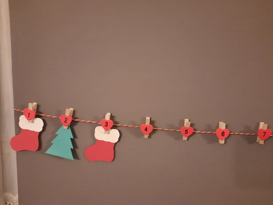 Μια πολύ εύκολη και εντυπωσιακή λύση είναι μια γιρλάντα με χριστουγεννιάτικες φιγούρες (μπότες και δενδράκια) που αντιστοιχούν στις μέρες πριν τα Χριστούγεννα.
