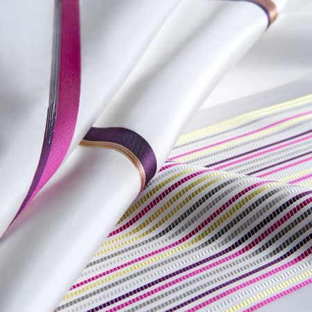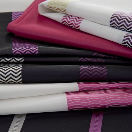 Η σειρά Boutique της εταιρείας Clark & Ckark χαρακτηρίζεται από τα ριγωτά μοτίβα σε διάφορες εκδοχές. Η χρωματική παλέτα κυμαίνεται από τις ουδέτερες αποχρώσεις του μπεζ, του ζαχαρί, του γκρι ως τις έντονες αποχρώσεις του μωβ και του φούξια.
