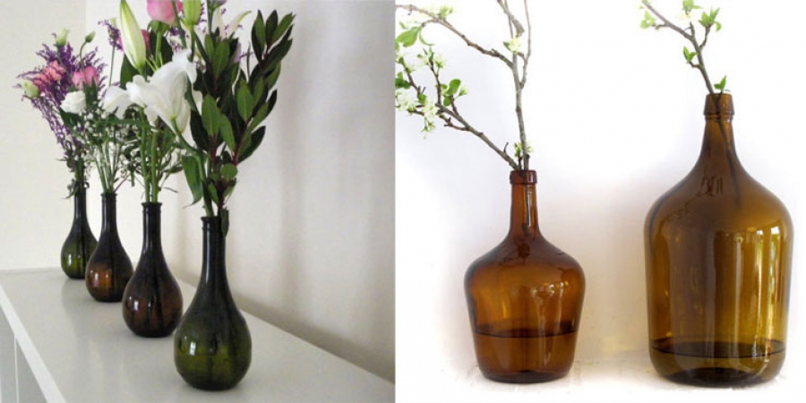 Σε αυτό το παράδειγμα, δύο αυθεντικές "νταμιτζάνες" από φυσητό γυαλί χρησιμοποιήθηκαν ως ανθοδοχεία.