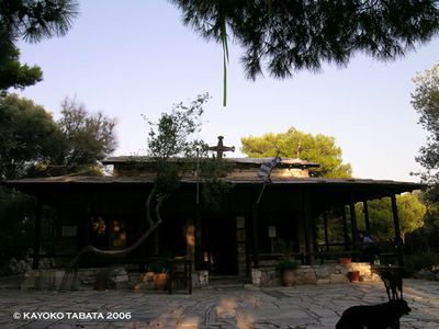Με την ίδια πρωτογενή δίψα αφοσιώνεται στο έργο αυτό και κυρίως στη διαμόρφωση του χώρου του Αγίου Δημητρίου Λουμπαρδιάρη, ενώ στα μονοπάτια αναλαμβάνουν δράση οι μαθητές του. Συνδέοντας τη βυζαντινή παράδοση με το σύγχρονο κολλάζ εμφυσά νέα δυναμική στην τοιχοδομία του ναού ενώ μετά από πολλά σχέδια, σκαριφήματα και δοκιμές θα ενισχύσει τη ζωγραφική αύρα του δομημένου χώρου κι έτσι οι σοφά επιλεγμένες πέτρες, θα συνδέσουν νοσταλγικά την αρχιτεκτονική πρόταση με τη γεωμετρική αφαίρεση του P. Mondrian (1872-1944) και τον λυρισμό του P. Klee (1879-1940). Με τη συνδρομή ενός γλύπτη που καλούπωνε τα τμήματα του μπετόν ώστε να συνυπάρχουν αρμονικά με τις πέτρες, τα κεραμικά και τα βότσαλα, ο δημιουργός ενορχηστρώνει πέρα από δόγματα και δοξασίες, προσδιορισμούς και κατηγοριοποιήσεις, την εικαστική συμφωνία με σεβασμό στο παρελθόν και αισιοδοξία στο μέλλον.