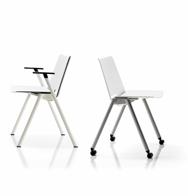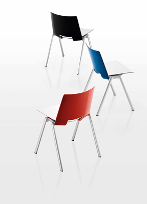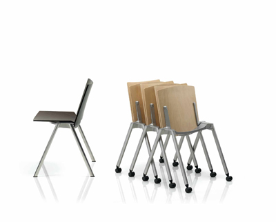Η προφανέστατα σύγχρονη καρέκλα με την καθαρότητα της μορφής βγαίνει σε διαφορετικές εκδόσεις: καρέκλα σε τετράποδη βάση με σταθερό ή ανακλινόμενο κάθισμα, καρέκλα σε περιστρεφόμενη βάση και κάθισμα αμφιθεάτρου.