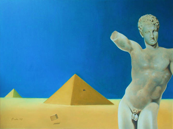 Το αρχαιοελληνικό παρελθόν τον οδηγεί σε εικαστικές ατραπούς όπου η μυθολογία προτείνει τους πρωταγωνιστές για το εικαστικό δρώμενο.