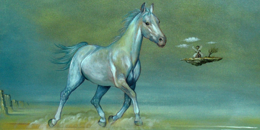 Η «Μοναξιά» γίνεται ένα κίτρινο, «δακρυσμένο» τριαντάφυλλο σε ένα απόκοσμο σκηνικό που ανακαλεί το έργο του Magritte και εντυπωσιάζει με τη δύναμη μιας αυθεντικής εικαστικής γλώσσας.