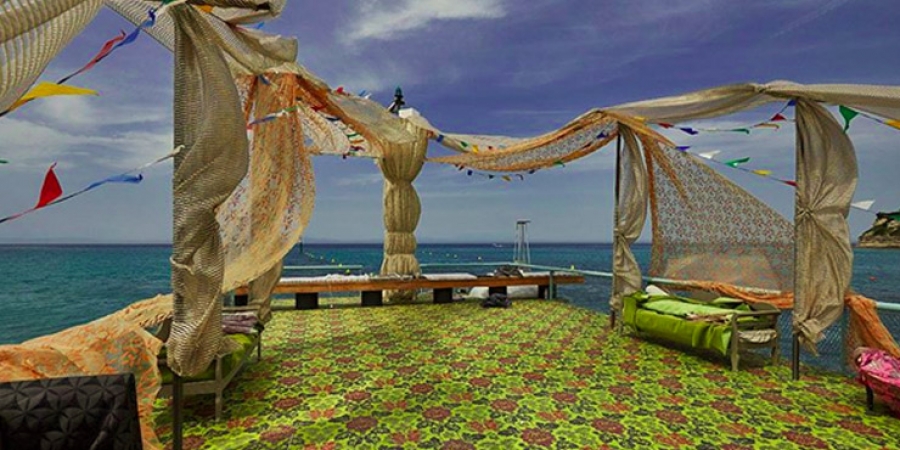 Η στενή λωρίδα γης που διεισδύει στη θάλασσα, δηλαδή η προβλήτα, επιστρώθηκε με πολύχρονα εμπριμέ υφάσματα. Το μαγικό χαλί, με τα χρώματα και τα μοτίβα, παρέπεμπε στο μωσαϊκό γεύσεων, χρωμάτων και πολιτισμών που συναντά ο ταξιδιώτης στο δρόμο του από την Ανατολή στη δύση και αντίστροφα.