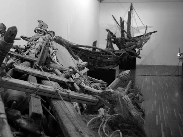 Ο Μαυραντζάς συντηρεί την έλξη προς τη θάλασσα κι εκείνη δε μένει στο ρόλο της τροφού αλλά εμπνέει ως μούσα και στηρίζει ως μαικήνας. Γιατί ο δημιουργός περιμένει πολλά από αυτή για να καταφέρει να δώσει ώθηση στην πρωτοτυπία. Και δεν τον απογοητεύει, καθώς συλλέγει κομμάτια από ξύλα, σπαράγματα της φύσης και της ανθρώπινης πρακτικής και του τα προσφέρει απλόχερα. Ξύλα σμιλεμένα στην αλμύρα της, δίχτυα ξεκομμένα από την αποστολή τους, ανανεώνουν τη σχέση τους μαζί της, μέσα από τη φαντασία, το μεράκι και την ικανότητα του δημιουργού. Γίνονται ξανά καράβια για να αρμενίσει η σκέψη και να αράξει το συναίσθημα.