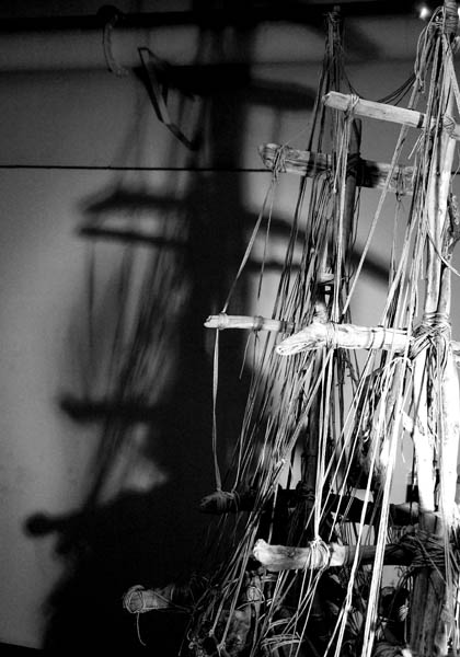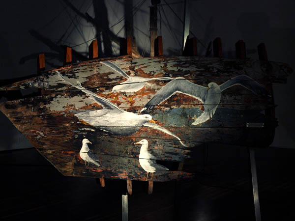 Σε άλλες επιφάνειες αναδύεται το ζωγραφικό ταλέντο και προβάλλουν εικόνες του βυθού ή του ουρανού, με τους πρωταγωνιστές ως παραστάτες του καραβιού στο ταξίδι. Στην πορεία, ένας φάρος υψώνεται για να φωτίσει την ελπίδα και ίσως να παρασύρει σε συνειρμούς για τους σκοτεινούς χρόνους που διανύουμε και την ανάγκη να απευθυνθούμε στην τέχνη για να ξαποστάσουμε και να συνεχίσουμε να δημιουργούμε, με διακαή αναφορά στον τόπο.