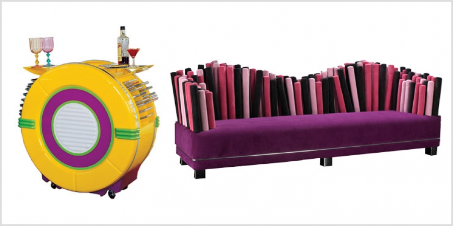Τα έπιπλα είναι γυαλιστερά και με δυνατά χρώματα που παραπέμπουν σε στυλ "Τροπικού Deco" και νεο-ποπ κουλτούρας. Τα βασικά υλικά είναι το πλαστικό και το στιλπνό δέρμα.