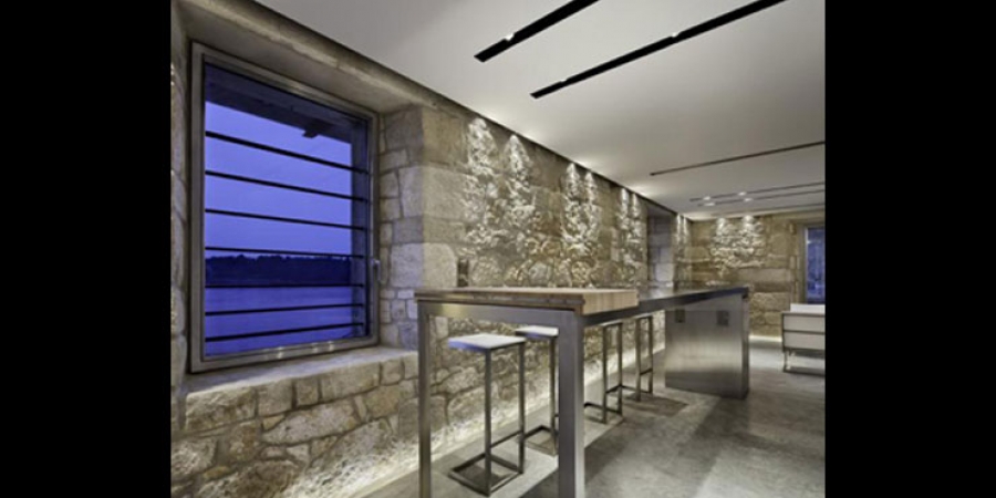 Μια φωτεινή σχισμή περιτρέχει τις πλάκες των δαπέδων και έτσι τα δάπεδα να δείχνουν ανεξάρτητα από την πέτρινη τοιχοποιία.