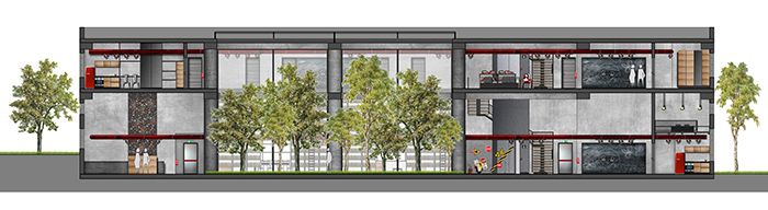 Κατοικίες-Lofts: Ο χώρος υποδοχής στο κτίριο αυτό έχει κοινή αντιμετώπιση με αυτόν του πολυχώρου.