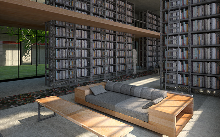 Κατοικίες-Lofts: Θεματική βιβλιοθήκη. Στο κτίριο αυτό στεγάζεται και βιβλιοθήκη με θεματολογία που αφορά τη μουσική.
