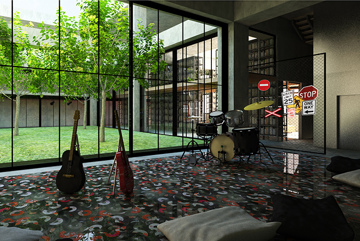 Κατοικίες-Lofts: Χώρος ψυχαγωγίας. Εδώ διοργανώνονται διάφορες μουσικές βραδιές.