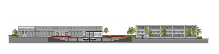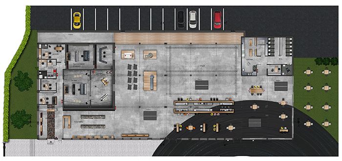 Κάτοψη του οικοπέδου 14 στρεμμάτων: Στα δεξιά ο πολυχώρος, αριστερά το κτίριο των κατοικιών loft και μπροστά από το κτίριο, το μουσικό πάρκο.