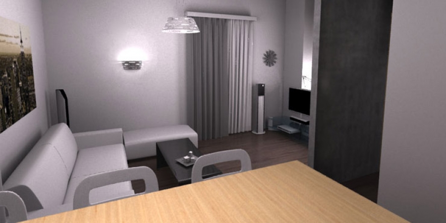 Τα δεδομένα για το συγκεκριμένο project ήταν ο χώρος συνολικής επιφάνειας 42τμ. και οι χρήστες για τους οποίους προορίζεται. Το ζητούμενο του μαθήματος ήταν ο σχεδιασμός και η διαμόρφωση ενός χώρου προκειμένου να φιλοξενήσει δύο φοιτητές αρχιτεκτονικής. Οι επιμέρους χώροι που απαιτούνταν ήταν κρεβατοκάμαρα, καθιστικό, κουζίνα, χώρος εργασίας και wc.