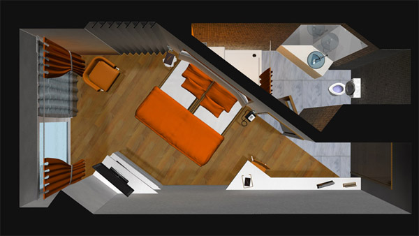 Προοπτική κάτοψη του δωματίου και του μπάνιου