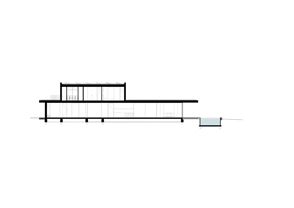 Τα μεγάλα στέγαστρα ενισχύουν αυτό το δεσμό, επιτρέποντας στους κατοίκους να περπατούν ελεύθερα γύρω από τη βίλα. Το βάθος του στεγάστρου είναι ευθυγραμμισμένο με την πορεία του ήλιου, προστατεύοντας τη βίλα από υπερθέρμανση παρά την εκτεταμένη χρήση γυαλιού στις προσόψεις.