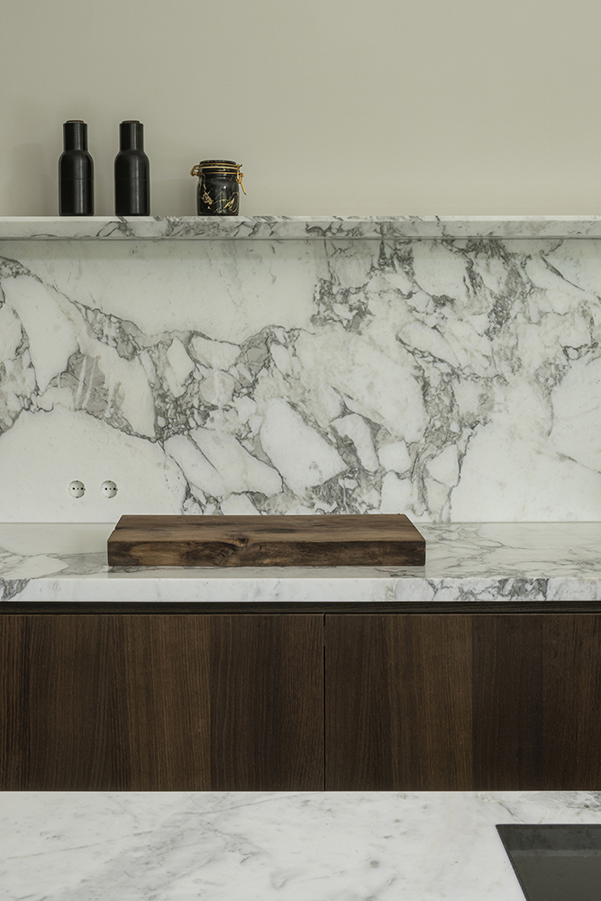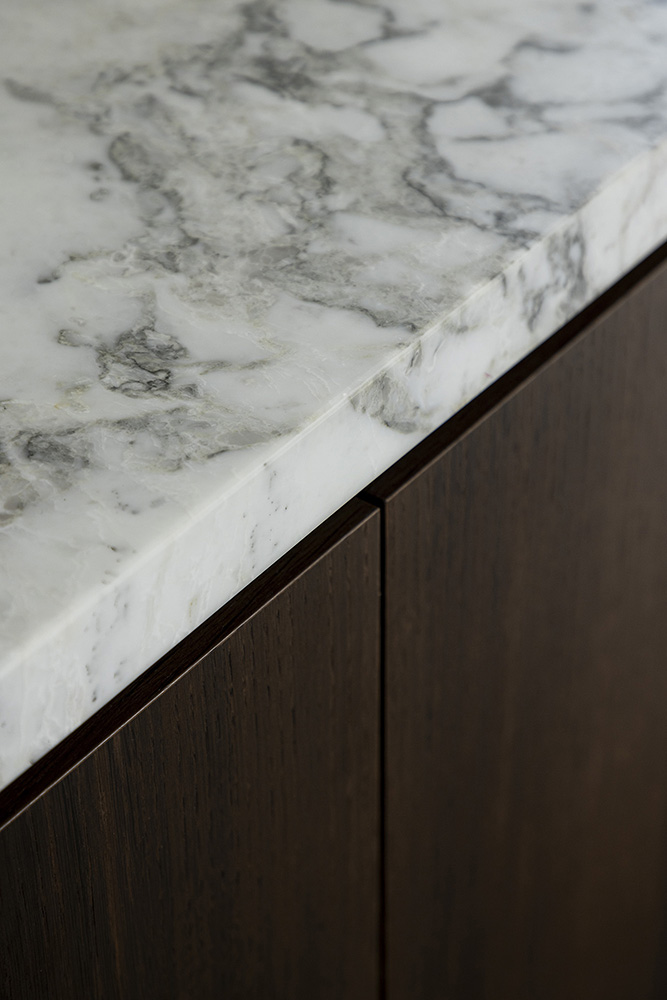 Τα κατά παραγγελία έπιπλα και τα εντοιχισμένα ντουλάπια αναδεικνύουν το εσωτερικό, με αυτά τα στοιχεία ενσωματωμένα στον αρχιτεκτονικό σχεδιασμό της βίλας.