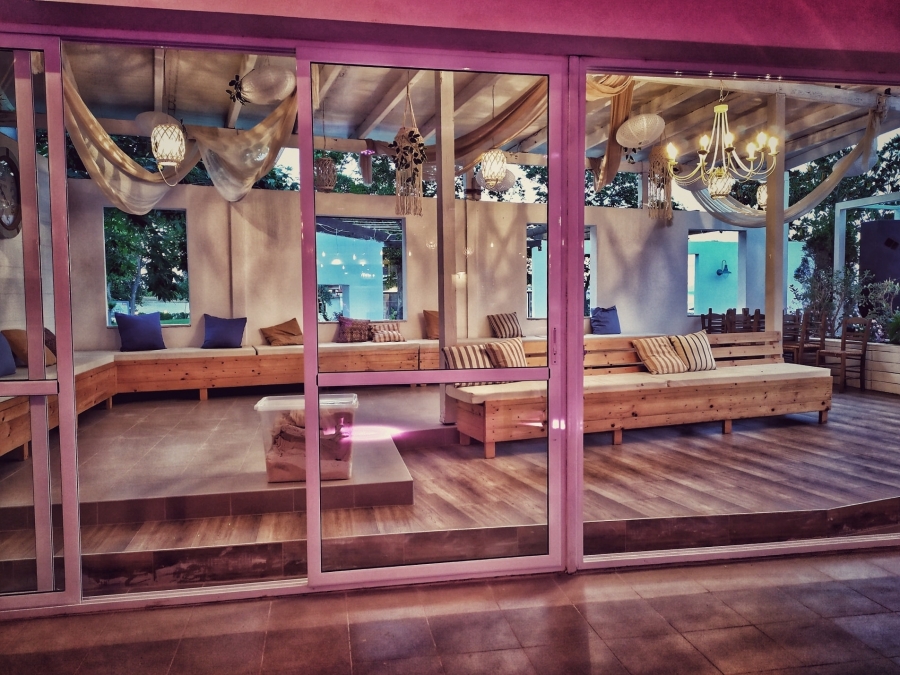 Εννοειται ότι μας άρεσαν πολύ τα αέρινα υφάσματα που κρέμονται από τα δοκάρια της στέγης, τα απαλά χρώματα και φυσικά τα μακραμε κρεμαστά διακοσμητικά. Τίποτα φυσικά δεν θα γινόταν αν δεν έμπαινε το προσωπικό γούστο και ο κόπος της Ελένης Λύτρα, μίας εκ των ιδιοκτητριών του Βατόμουρου.