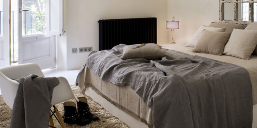 Το υπνοδωμάτιο συνδέεται απευθείας με το καθιστικό, μέσω ενός τοξωτού ανοίγματος. Τα δάπεδα είνα ολόσωμα από σκυρόδεμα.