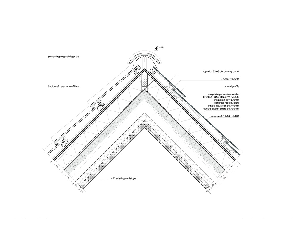 Τα πλακάκια της στέγης από την πλευρά της αγοράς έχουν αντικατασταθεί από φωτοβολταϊκά πάνελ σε ουδέτερο, σκούρο χρώμα. Ως αποτέλεσμα, είναι πρακτικά αόρατα και διατηρείται η υψηλής ποιότητας αισθητική εμφάνιση της στέγης. Η ιδέα για την ενεργειακή απόδοση έχει προσαρμοστεί για αυτό το κτίριο. Η υπολειπόμενη θερμότητα από τον εξοπλισμό των δεδομένων των διακομιστών της KPN στο υπόγειο χρησιμοποιείται για την προθέρμανση του νερού της βρύσης και για τη θέρμανση των δαπέδων στα διαμερίσματα και το εστιατόριο. Το νερό θερμαίνεται επίσης με ηλιακούς λέβητες στην επίπεδη οροφή στο πίσω μέρος του κτηρίου. Το κτίριο θερμαίνεται και ψύχεται με ηλεκτρικές αντλίες θερμότητας. Παράγεται αρκετή ενέργεια για την κάλυψη των αναγκών σχεδόν όλων των διαμερισμάτων και μερικών αναγκών του εστιατόριου.