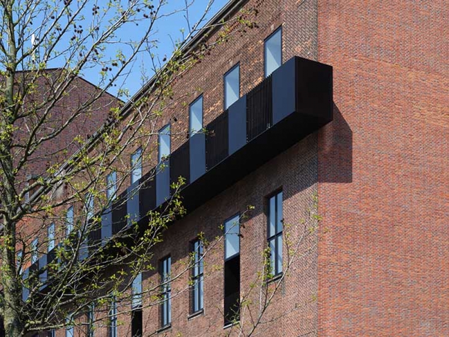 Η πρόσοψη που βλέπει στην πλατεία της αγοράς έχει τροποποιηθεί ώστε να δημιουργεί εξωτερικούς χώρους και να προσελκύει περισσότερο φως στο κτίριο. Οι δύο χαμηλότεροι όροφοι έχουν γαλλικά μπαλκόνια, ενώ ένα συνεχές μπαλκόνι τρέχει κατά μήκος του τρίτου ορόφου. Τα διαμερίσματα στα επίπεδο της οροφής με το μεγάλο ύψος διαθέτουν μπαλκόνι στη στέγη.