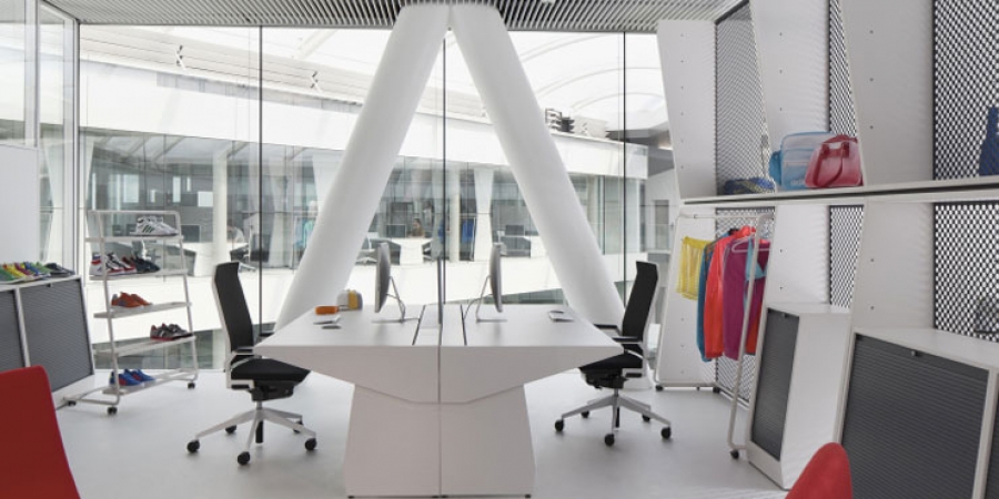 Και όπως ακριβώς συμβαίνει και στην ομαδική εργασία, έτσι και στα γραφεία της adidas, κανένα στοιχείο δεν μπορεί να λειτουργήσει μόνο του. Όλα τα τμήματα είναι σχεδιασμένα ώστε να λειτουργούν ως ομάδα. Άλλωστε, στην adidas οι εργαζόμενοι, είτε είναι σχεδιαστές, είτε πωλητές είτε διευθυντικά στελέχη, εργάζονται ή ενθαρρύνονται να εργάζονται ομαδικά.
