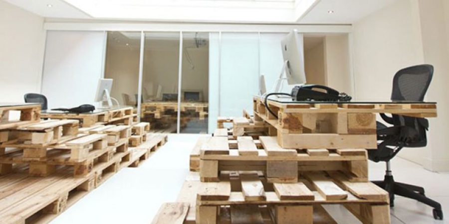 Έτσι, οι αρχιτέκτονες με τη σύμφωνη γνώμη των εργοδοτών, αποφάσισαν να χρησιμοποιήσουν ως «πρώτη υλη» για την επίπλωση του εσωτερικού χώρου, μερικές δεκάδες παλέτες συσκευασίας και μεταφοράς αντικειμένων. Με αυτόν τον τρόπο έδωσαν και μια πρωτότυπη απάντηση στους παρακάτω δύο αυτο-περιορισμούς: