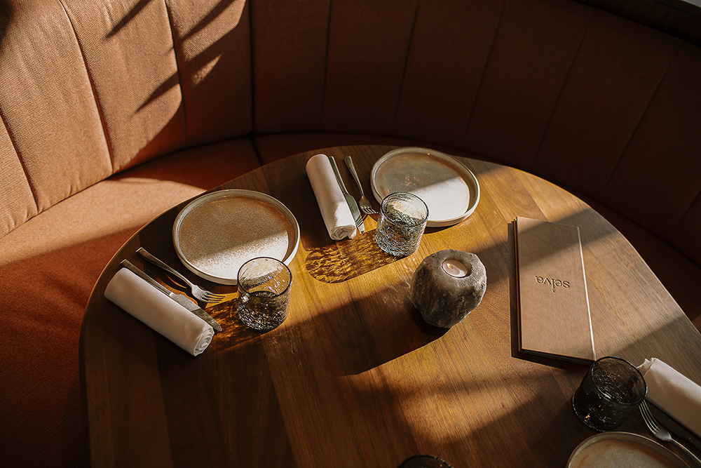 Οι καμπυλωτές αυτές φόρμες βοηθούν στo διαχωρισμό του εστιατορίου σε ζώνες, δημιουργώντας ελικοειδή και δελεαστικά μονοπάτια που ενθαρρύνουν την εξερεύνηση και μαλακώνουν την αρχική τραχύτητα του χώρου.