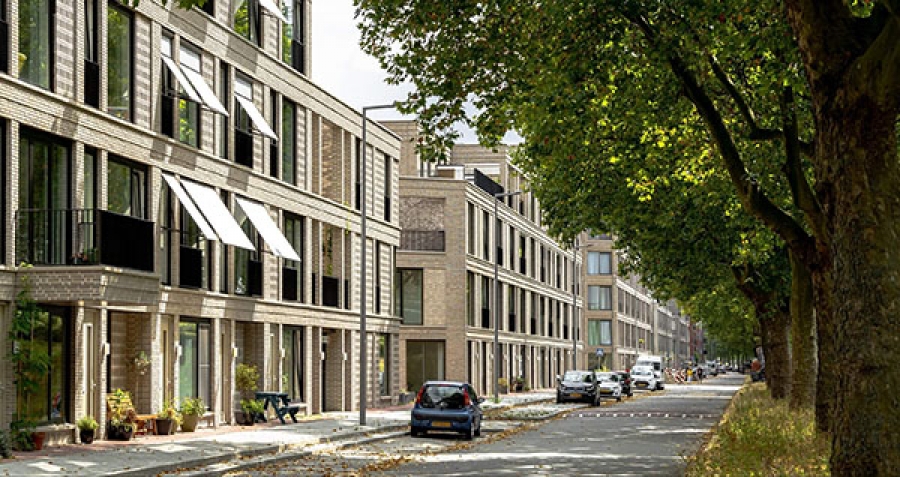 Πέντε κλειστά οικοδομικά τετράγωνα, το καθένα με το δικό του χαρακτήρα και εξαιρετικά διαφοροποιημένο πρόγραμμα στέγασης, μια αυλή στον πρώτο όροφο και ένα πάρκινγκ από κάτω. Οι αυλές έχουν όλες μια μοναδική διάταξη, με μια πιο συλλογική ή ιδιωτική δομή. Το εξωτερικό περίβλημα των τετραγώνων είναι από εμφανή πλινθοδομή που σταδιακά γίνεται πιο ανοιχτόχρωμη και αλλάζει χρώμα μεταβαίνοντας από την πλευρά της γειτονιάς στο πάρκο στην άλλη πλευρά. Τα τετράγωνα συνδυάζονται τόσο με την αρχιτεκτονική του κόκκινου τούβλου της περιοχής του 20ου αιώνα όσο και με την ελαφράδα του πάρκου.