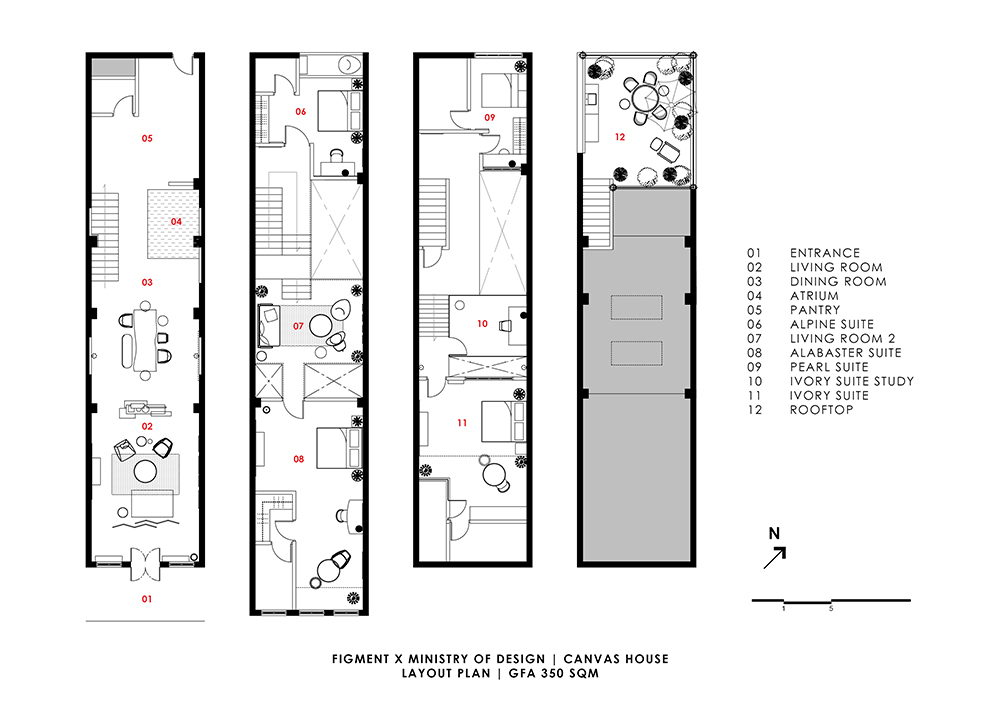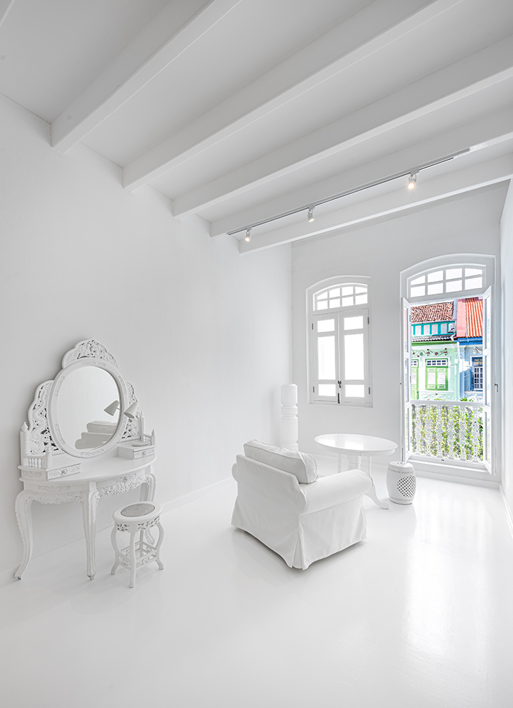 Ο πελάτης (Figment) μας έδωσε ένα σφιχτό προϋπολογισμό και 4 μήνες περιθώριο (σχεδιασμός, προμήθεια & προετοιμασία) για να ξανασκεφτούμε τους εσωτερικούς χώρους, με σκοπό την ενοικίαση των σουιτών σε μετανάστες για διαμονή 3-12 μηνών. Τα ενοίκια ξεκινούν από 3300 δολάρια Σιγκαπούρης το μήνα. Ο στόχος ήταν να κάνουμε κάτι απολύτως ελκυστικό για τους ενοικιαστές, και να βρούμε ένα τρόπο για να ξεχωρίζει αυτό το shophouse.
