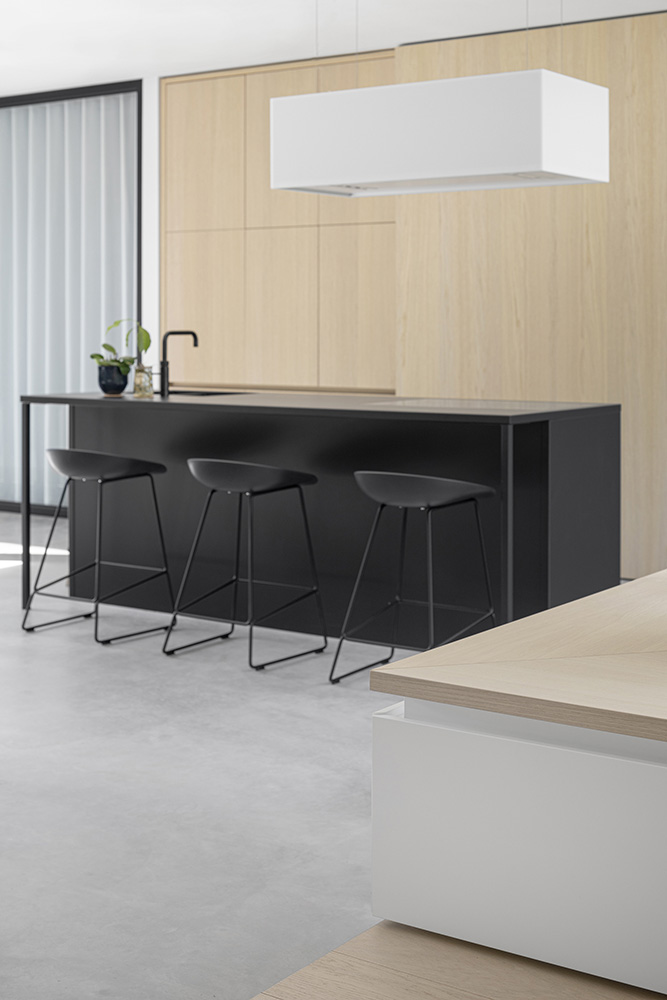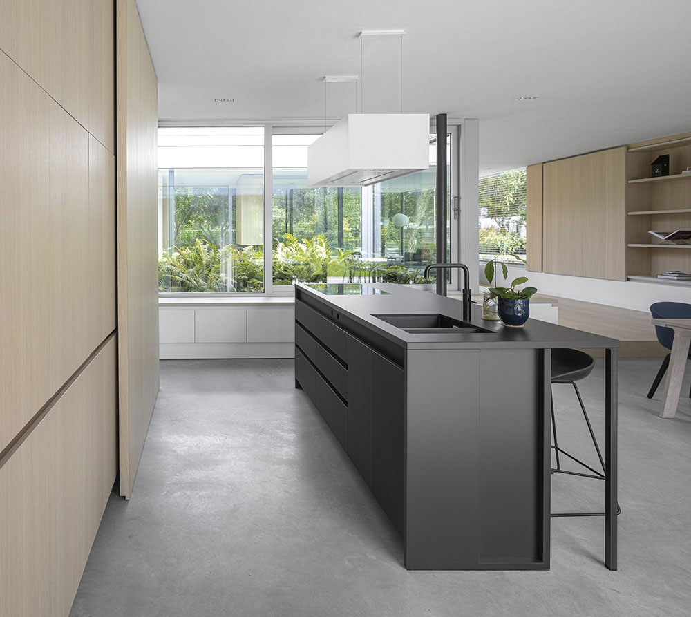 Με πουριστική σχεδιαστική προσέγγιση και λιτά υλικά, οι Bedaux de Brouwer και οι i29 σχεδίασαν μια βίλα που έχει πολυτελή ποιότητα, χωρίς να είναι επιβλητική. Η μεγαλύτερη ποιότητα αυτού του σπιτιού είναι η αρμονική ενσωμάτωση του μέσα και του έξω μέχρι την παραμικρή λεπτομέρεια. Μεγάλες ξύλινες επιφάνειες εφαρμόζονται σε όλο το σπίτι για τη σύνδεση των διαφόρων περιοχών. Ντουλάπια, ντουλάπες, τοίχοι, συρόμενες πόρτες, κρεβάτια είναι κατασκευασμένα από το ίδιο ξύλο και φινίρισμα για ενότητα και σύνδεση.