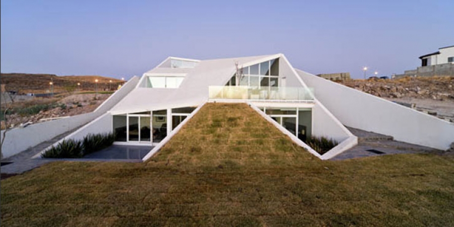 Οι μελετητές για να εξισορροπήσουν τις ακραίες διαφορές θερμοκρασίας, ‘έθαψαν’ εν μέρει το σπίτι στην πλαγιά του βουνού για να εκμεταλλευτούν τα οφέλη από τη θερμική μάζα του εδάφους.