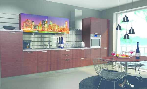 Και η κουζίνα της επόμενης εικόνας (από την Neoset) συνδυάζει κλασικά με μοντέρνα στοιχεία. Οι πόρτες είναι σε απόχρωση δρυς σκούρο (κλασική επιλογή) ενώ οι πόρτες των επιτοίχιων ντουλαπιών είναι με εκτύπωση (μοντέρνο στοιχείο). Ο απορροφητήρας επίσης είναι από Inox.