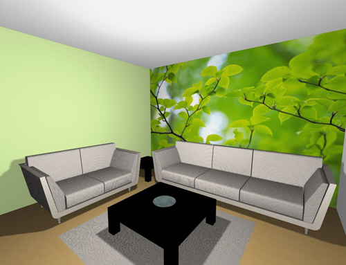 Έτσι για παράδειγμα, θα μπορούσατε να επιλέξετε μια φωτοταπετσαρία που να απεικονίζει ανοιξιάτικα θέματα, όπως πράσινα φύλλα, λουλούδια, κλπ. Οι υπόλοιποι τοίχοι μπορούν να βαφούν σε μια ανάλογη αλλά απαλή απόχρωση του πράσινου. Το πράσινο χρώμα δημιουργεί συναισθήματα χαλάρωσης και ηρεμίας και ως εκ τούτου θεωρείται κατάλληλο για τα περισσότερα δωμάτια της κατοικίας.