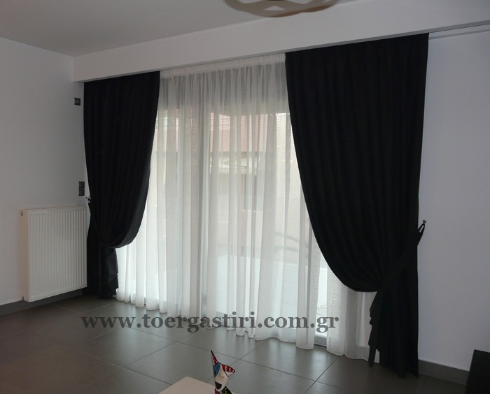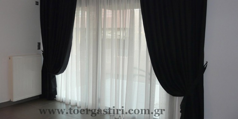 Μαύρη κουρτίνα με ασπρόμαυρη δέστρα