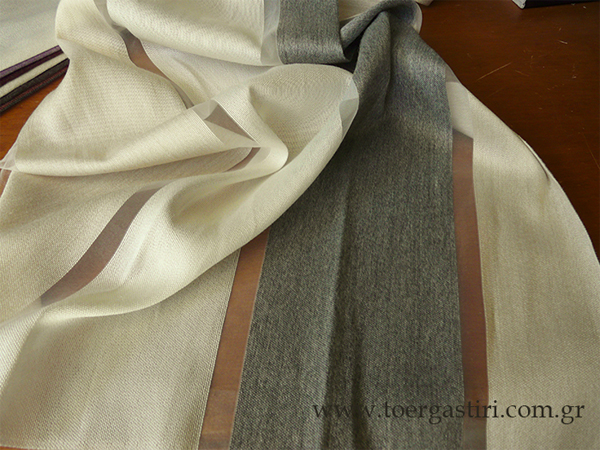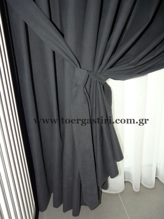 Γκρί κουρτίνα με πιάστρα τύπου "γραβάτα"
