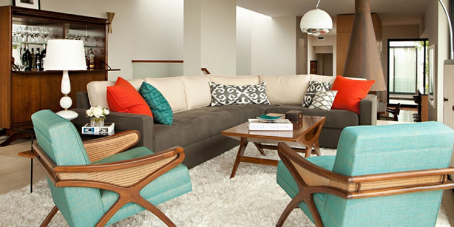 Δείτε τον παρακάτω χώρο: Το φόντο είναι χρωματικά ουδέτερο (τοίχοι, καναπέδες, χαλί) αλλά έχει διάσπαρτες χρωματιστές πινελιές (μαξιλάρια, καθίσματα, κλπ).