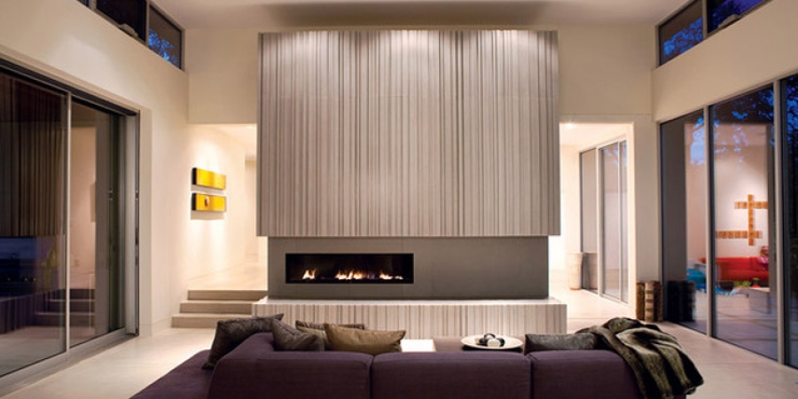 Ο όγκος του τζακιού προτείνεται ανοιχτόχρωμος για να αποτελεί μια διακριτική παρουσία στο χώρο.