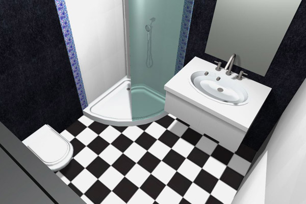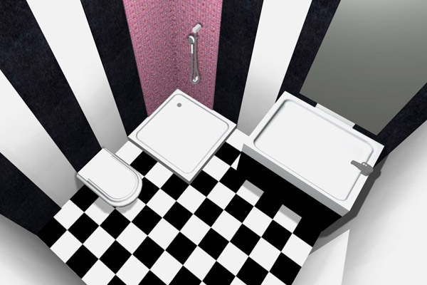 Το μαύρο και το λευκό συνδυάζονται σε διάταξη σκακιέρας στο δάπεδο, ενώ μπορούν να δημιουργήσουν ρίγες σε δύο τοίχους και οι υπόλοιποι να γίνουν λευκοί.
