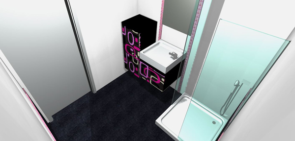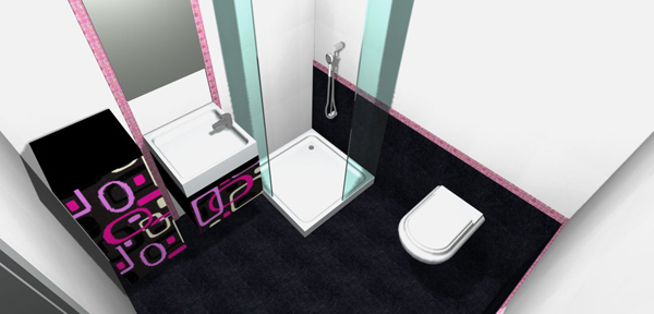 Η μωβ-ροζ ψηφίδα μπορεί να τοποθετηθεί σαν μπορντούρα είτε οριζόντια, είτε κατακόρυφα σε διάφορες θέσεις πχ. δεξιά και αριστερά της καμπίνας της ντουζιέρας ή του καθρέπτη.