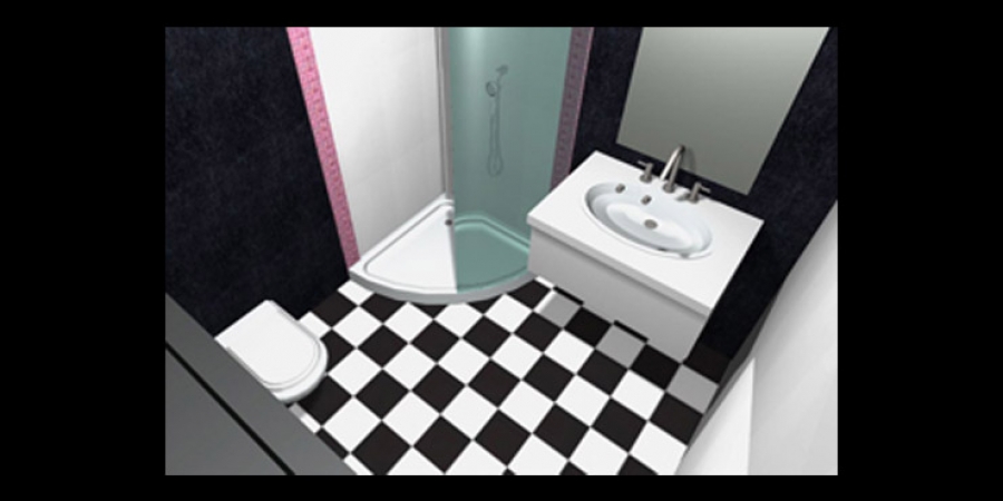 Υπάρχουν πολλοί συνδυασμοί λευκού και μαύρου σε πλακάκια, όπου η παρουσία ενός χρώματος (μωβ-ροζ ψηφίδα) δίνει μια ευχάριστη πινελιά στον ασπρόμαυρο κόσμο του μπάνιου.