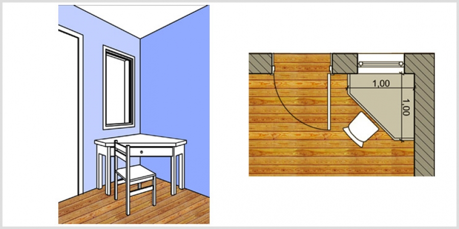Η δέυτερη λύση αφορά στη δημιουργία ενός μικρού χώρου εργασίας και μελέτης. Αν αποφασίσετε, να δημιουργήσετε χώρο μελέτης τότε σας προτείνουμε να επιλέξετε ένα κομψό, γωνιακό τραπέζι. Έτσι, αφενός αξιοποιείται το φυσικό φώς του παραθύρου και αφετέρου ο χρήστης δεν 'γυρίζει την πλάτη του' προς το χώρο, μπορεί δηλαδή, να κοιτάει έξω απο το παράθυρο αλλά και προς το καθιστικό. Σε περίπτωση που δεν βρείτε στο εμπόριο, γωνιακό γραφείο θα πρέπει να απευθυνθείτε σε επιπλοποιό δίνοντας του, τις γενικές διαστάσεις του επίπλου.