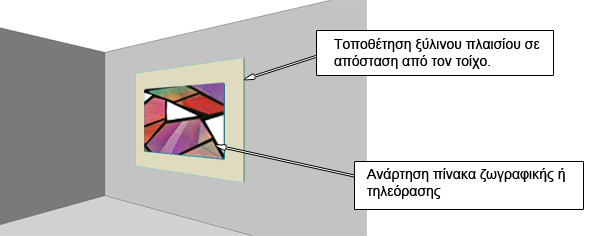 Β' λύση: Τοποθέτηση ξύλινου πλαισίου για ανάρτηση πίνακα ζωγραφικής ή της τηλεόρασης