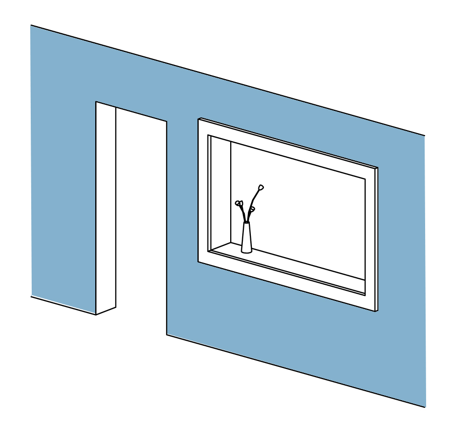 Η τελευταία μας πρόταση, αφορά την αντιμετώπιση του εσωτερικού παραθύρου, ώς ένα καθαρά διακοσμητικό στοιχείο του χώρου χωρίς να έχει κάποια συγκεκριμένη λειτουργία (πχ, πάγκος σερβιρίσματος ή ποτηροθήκη). Για παράδειγμα, μπορείτε να κατασκευάσετε μια ξύλινη κορνίζα που θα πλαισιώσει κομψά το άνοιγμα ή μια λευκη κορνίζα (πχ, απο γυψοσανίδα) και να στη συνέχεια να βάψετε το τοίχο σε μια σκουρότερη απόχρωση.