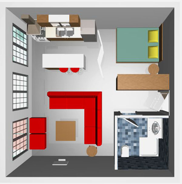 “Θα ήθελα να με βοηθήσετε στην διαρρύθμιση του ενιαίου χώρου που διαθέτω με διαστάσεις 6 επί 6 μέτρα.Ο χώρος είναι χωρίς δωμάτια μιας και είμαι λάτρης των χώρων αυτών (lofts)και το δάπεδο είναι αυτοεπιπεδούμενο βιομηχανικό. Το μόνο δωμάτιο στα αριστερά από την είσοδο που είναι ένας κύβος 2 επί 2 μέτρα που είναι το μπάνιο και με ένα μικρό διαδρομάκι 1 μέτρου που είναι οι ντουλάπες.” Σάββας
