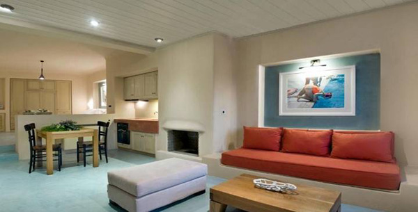 Η μορφολογία των καναπέδων πρέπει να είναι ανάλογη του στυλ διακόσμησης του χώρου. Υπάρχει δυνατότητα ξύλινης επένδυσης των χτιστών καναπέδων για πιο “ζεστό” αποτέλεσμα.