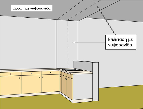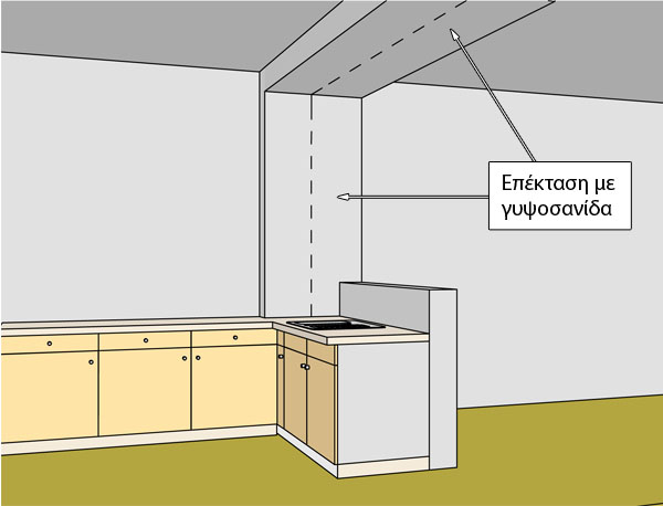 Ωστόσο, αν επεκτείνετε το δοκάρι θα πρέπει να επεκτείνεται και το κατακόρυφο υποστύλωμα. Η κατασκευή μπορεί και σε αυτήν την περίπτωση να γίνει με γυψοσανίδα.