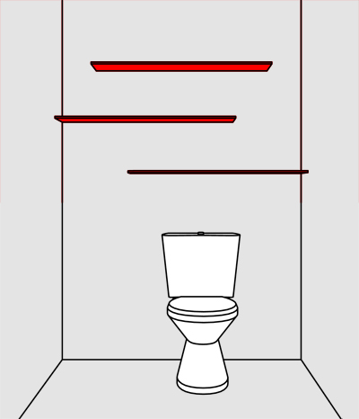 Άλλωστε, οι τοίχοι και τα ράφια βρίσκονται ακριβώς στο επίπεδο των ματιών και έτσι το ενδιαφέρον εστιάζεται περισσότερο από ότι στη λεκάνη της τουαλέτας.