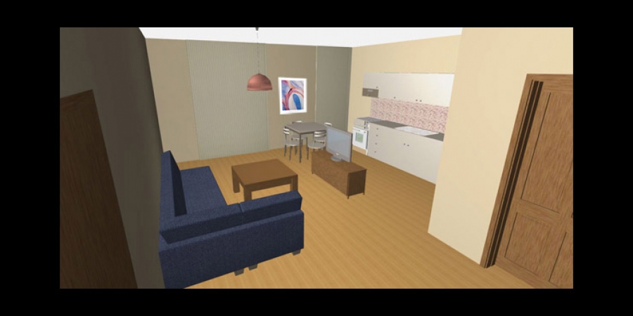 - Τοποθετούμε ένα χαμηλό έπιπλο για την TV με μικρό αποθηκευτικό χώρο μεταξύ της περιοχής της κουζίνας και του καθιστικού, ώστε να λειτουργεί ως διαχωριστικό και ταυτόχρονα να μη προκαλεί αίσθημα στενότητας στο χώρο.